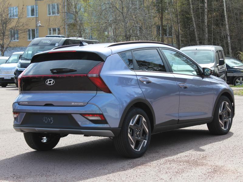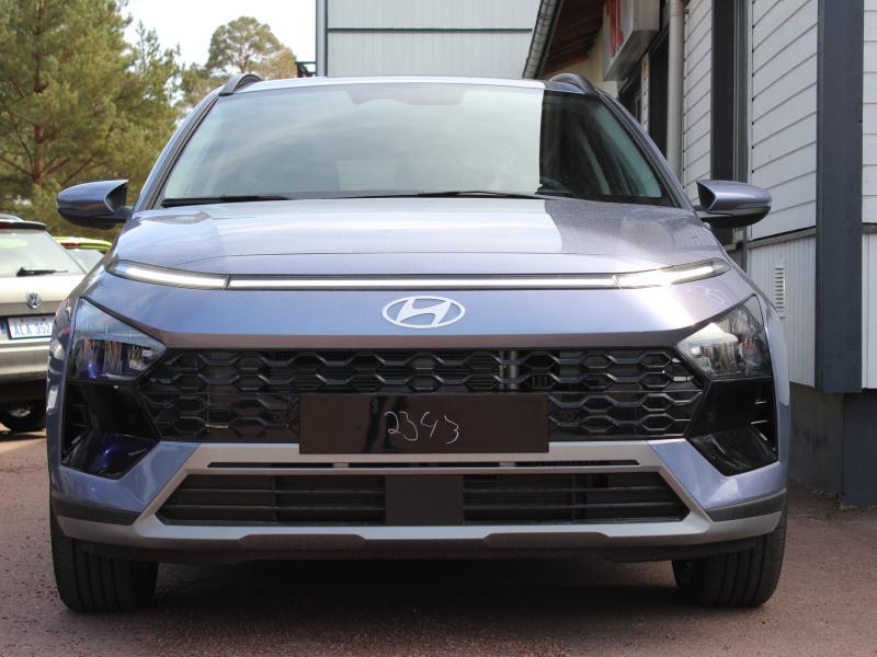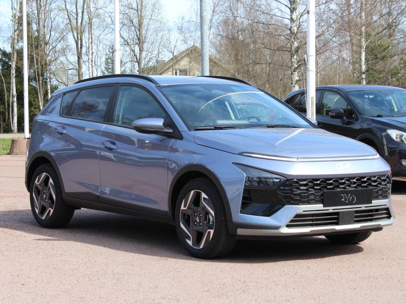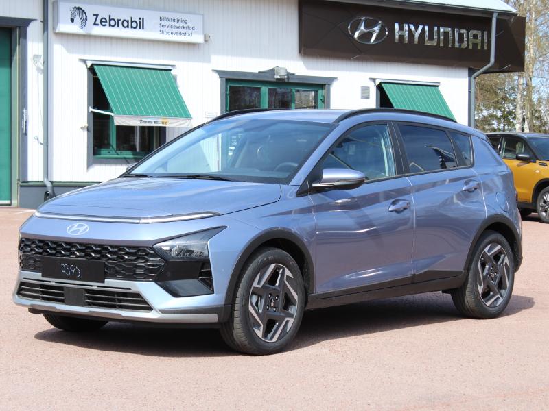 Hyundai Bayon automat utrustad med bla. Ledljus fram och bak, kamera, parkeringsvarnare, Qi mobilladdare, Apple car play, 10,25″ supervision digita mätartavla, smart key, tonade bakrutor, 17″ fälgar, Smart Cruise Pack med adaptiv fathållare, kollisionsvarningsystem, parkeringsvarnare fram, Smart Key, helautomatisk klimatkontroll & regnsensor. Totalpris inkl. metallicfärg, textilmattor och vinterdäck 30216€ – 316€ = 29900€