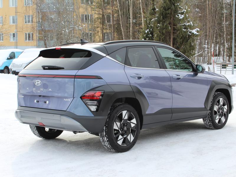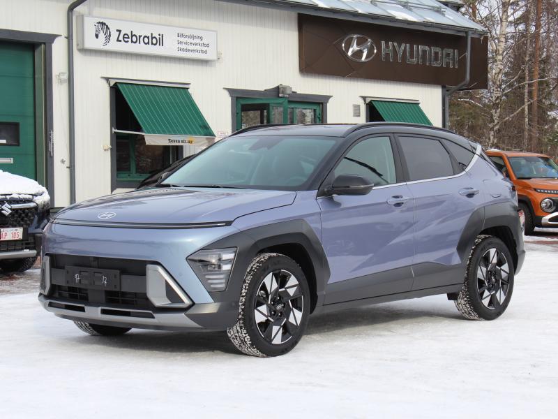 Kona Hybrid med rätt utrustning till rätt pris!  Utrustad med bla. Phantom black tak, Nokian Hakka 10 dubbdäck, metallicfärg, textilmattor, elbaklucka, Bose-ljudsystem med sub, Digital NFC nyckel, 360 kamera, 360 parkeringsvarnare, adaptiv farthållare, sommardäck på 18″ premiumfärlgar, Seamless Horizon Led-ljus, eljusterbara framsäten, rattvärme, värme i baksätet mm. 5 års garanti på bilen och 8 på hybridbatteriet. 4300€ rabatt på detta ex!